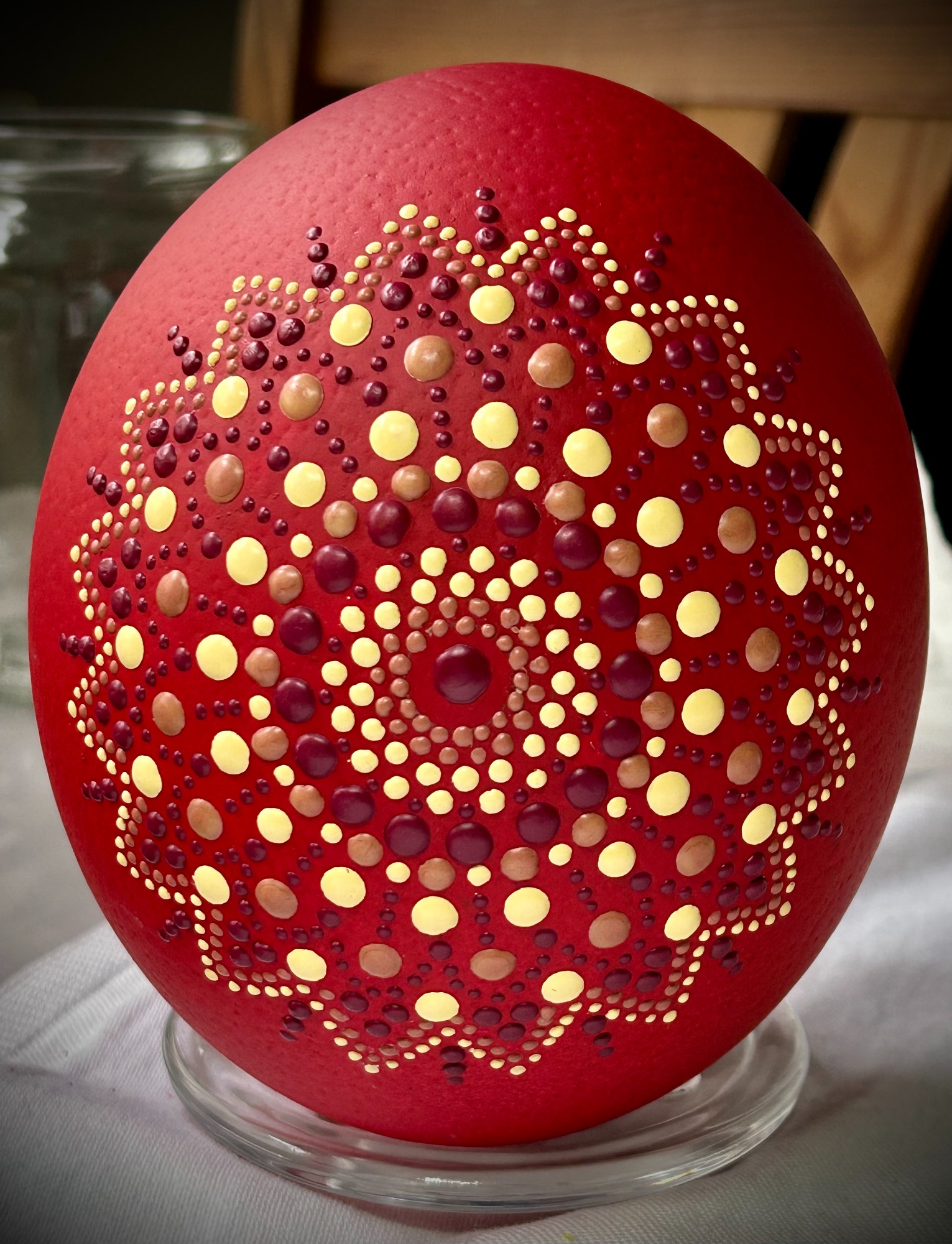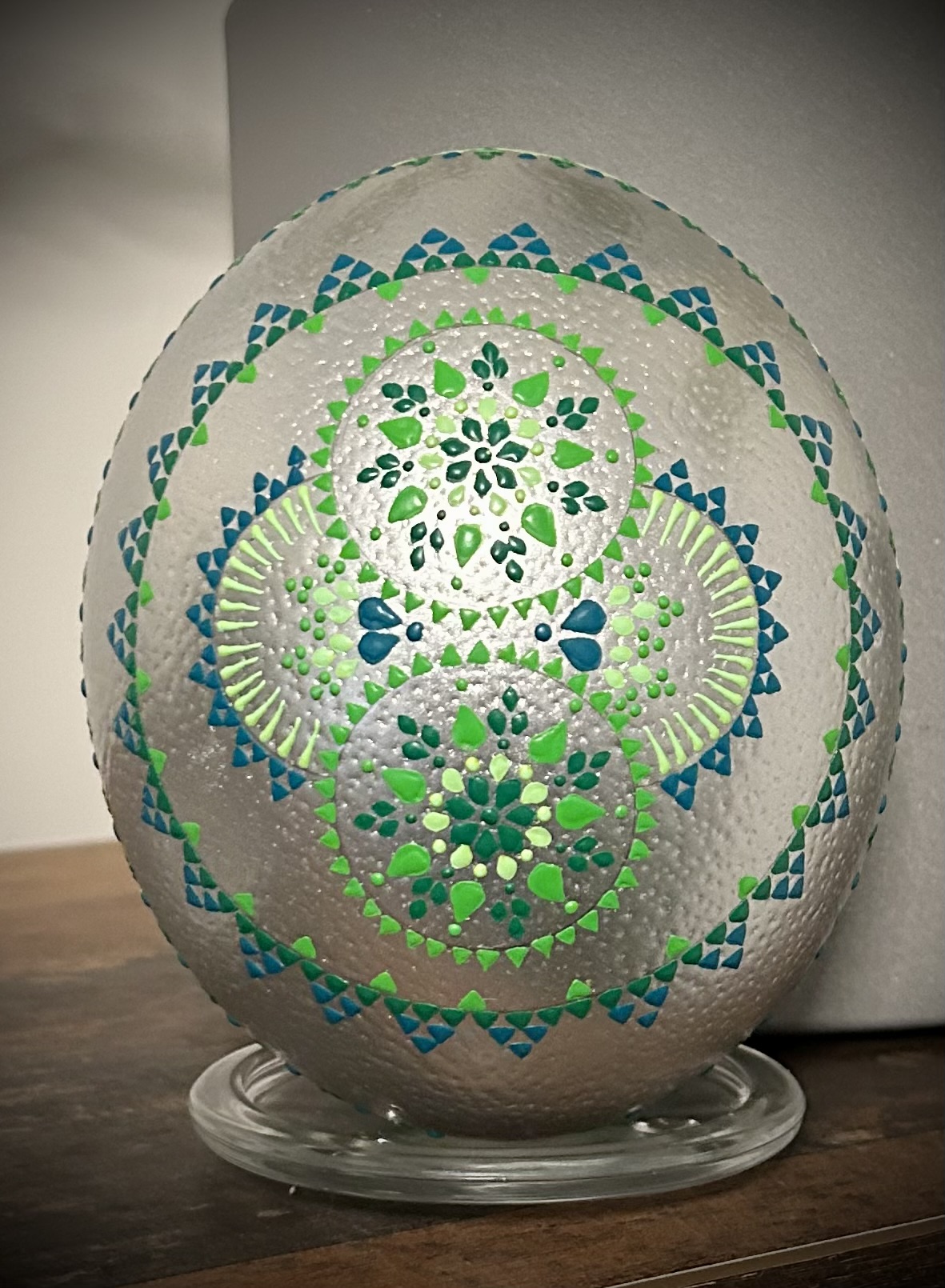 Ich nutze die Wachsbossiertechnik, um erstaunliche Muster zu schaffen und jedes Osterei zu einem Unikat zu machen.